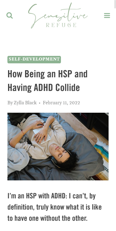 ArticlePosted on 3. March 20243. March 2024“How Being an HSP and Having ADHD Collide” by Zylla Black https://highlysensitiverefuge.com/how-being-an-hsp-and-having-adhd-collide/ #ADHD #Creativity #DeepConnections #DeepProcessing #Distractibility #EmotionalOverload #Empathy #HighSensitivity #HSP #Hyperfocus #Impulsivity #Intuition #SensoryOverload #SensoryProcessingSensitivity #ZyllaBlack